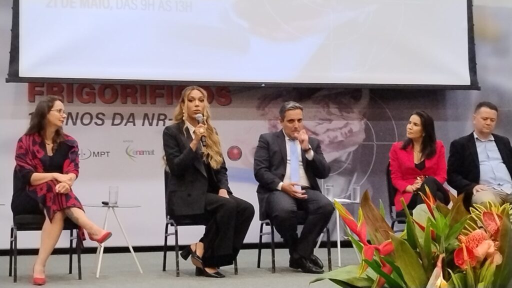 Durante o seminário, Osvaldo Teófilo esteve ao lado de representantes do Ministério Público do Trabalho (MPT), do Ministério do Trabalho e Emprego (MTE), do Tribunal Superior do Trabalho (TST), além de deputados federais que se posicionaram favoravelmente ao debate e ao avanço de políticas públicas que favoreçam os trabalhadores do setor de frigoríficos.